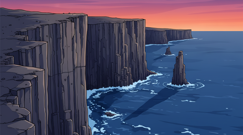 Dolerite cliffs formed from Jurassic-era volcanic activity. Long connected to palawa (Tasmanian Aboriginal) history.