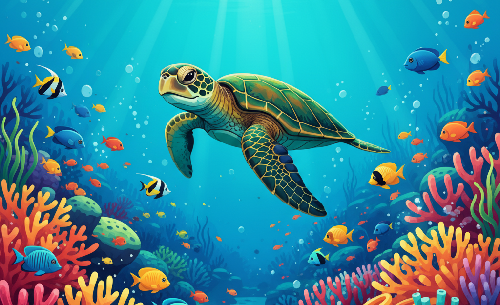 - The reef hosts 6 of the world’s 7 sea turtle species.