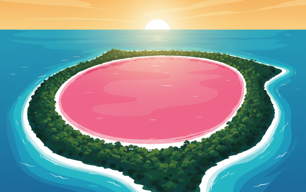 A natural bubblegum-pink lake sitting next to deep blue ocean.
