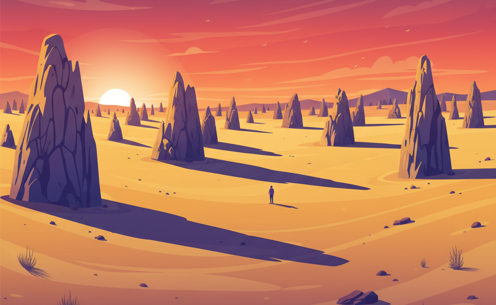An alien landscape of thousands of limestone spires rising from golden sand.